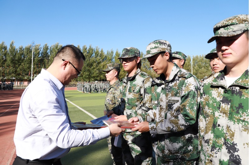 在慰问活动中,“五老”代表裴杭向同学们介绍了黑龙江建筑职业技术学院的建校史、发展史以及办学理念,希望同学们能够尽快融入学院,规划好自己的人生目标。他勉励新生们刻苦训练,在军训这一大学第一课中,真正学到军人的坚韧不拔、严明的纪律性、团队精神、爱国主义精神以及良好的意志品质,并将这些品质融入到今后的学习和生活中。同时,他祝愿学院早日实现“申本”目标,并寄语新生们学业有成,前程似锦。