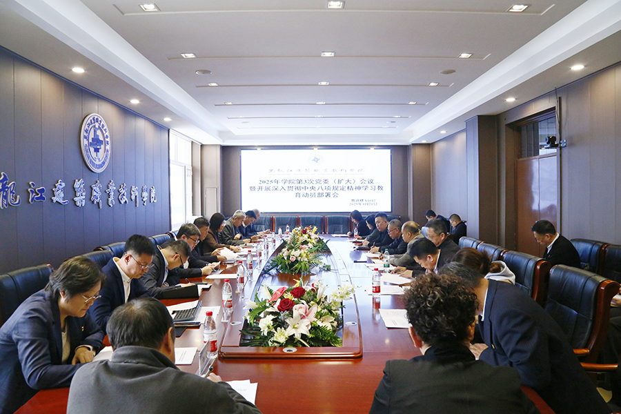 2025年3月21日,黑龙江建筑职业技术学院党委扩大会议暨深入贯彻中央八项规定精神学习教育动员部署会,传达学习中央党的建设领导小组会议精神和中共中央办公厅《关于在全党开展深入贯彻中央八项规定精神学习教育的通知》要求,结合《黑龙江建筑职业技术学院深入贯彻中央八项规定精神学习教育实施方案》,研究部署贯彻落实工作。学院院长、党委副书记何檀同志主持会议,学院党委书记孔祥华同志作深入贯彻中央八项规定精神学习教育动员部署讲话,学院全体党委委员、纪委委员、各党总支书记参加会议