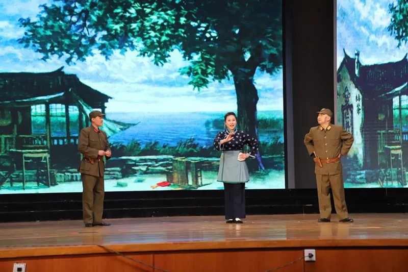现代京剧《沙家浜》选段“军民鱼水情”“智斗”、《红灯记》选段“痛说革命家史”、《智取威虎山》选段“打虎上山”“只盼深山出太阳”等红色经典,更是赢得现场掌声不断,充分显示出新时代青年对革命先驱的敬仰和对京剧艺术的喜爱。同学们一边聆听着台上精彩的高唱,一边陶醉在丝竹京韵的戏剧人物里,演唱会由此变成了一场生动的红色主题教育课。