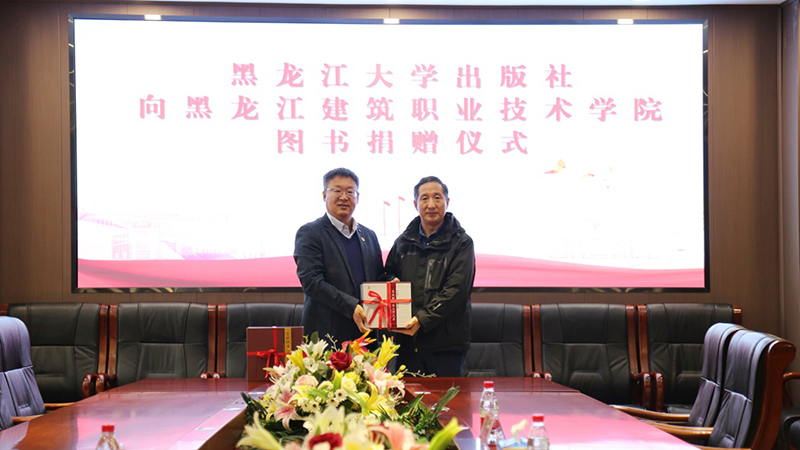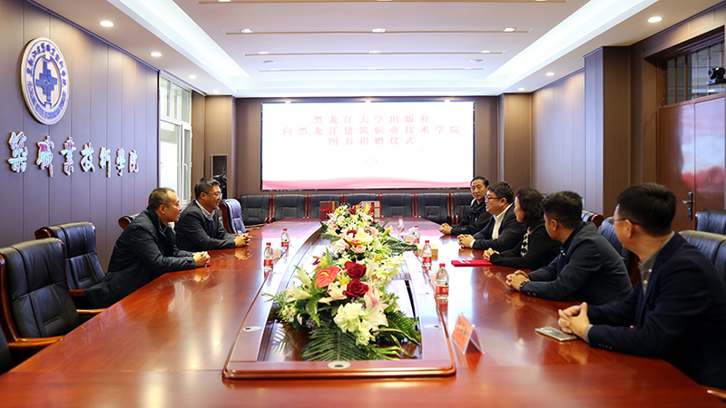 黑龙江大学出版社社长张永超和社长助理周志国,黑龙江建筑职业技术学院院长王力,党委副书记、工会主席胡铁成,副院长才德鑫,党政办公室负责人郭春明和图文信息中心主任武爱斌参加捐赠活动。