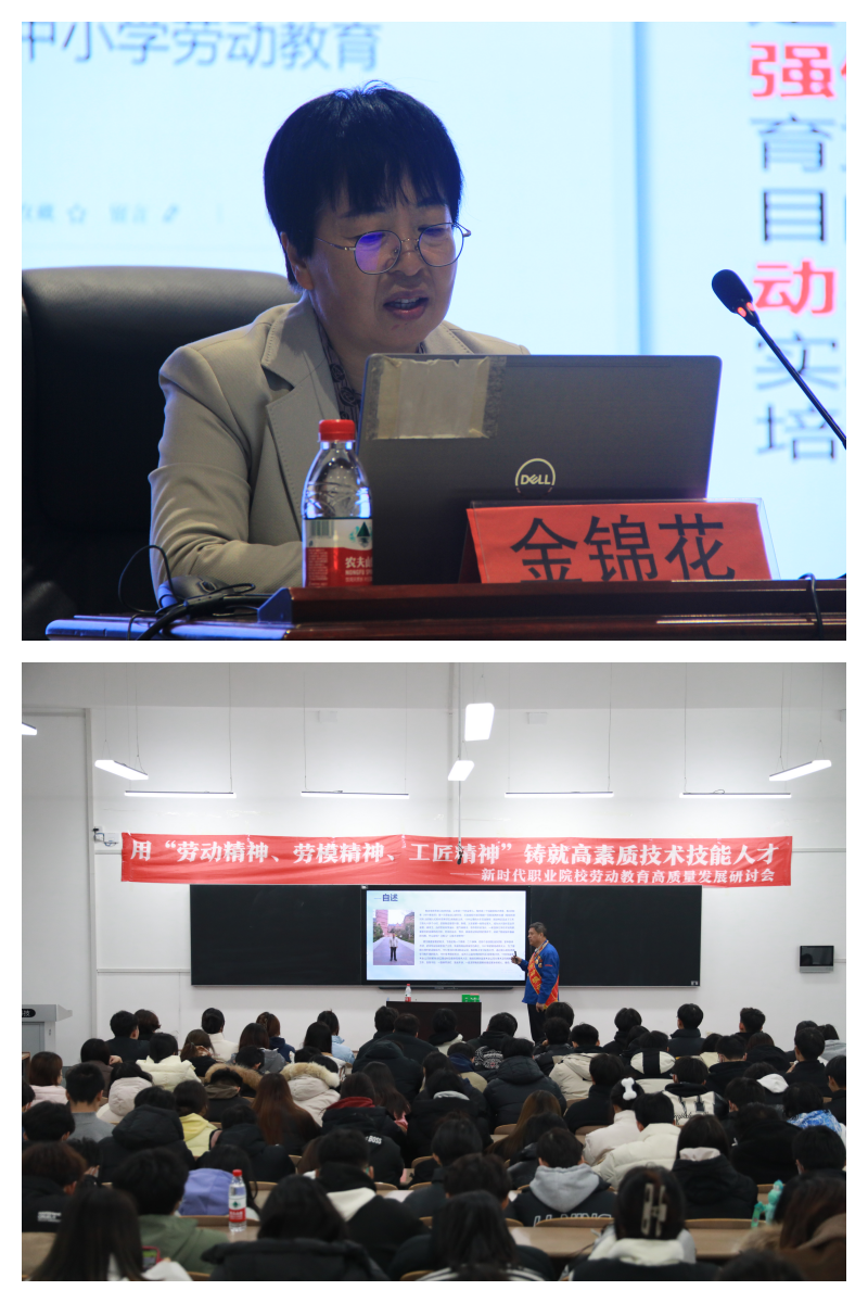 在会议中,黑龙江建筑职业技术学院建筑系主任金锦花分享了他们在《劳动教育》课程中的教学实践案例。她详细介绍了在近三年的课程建设中,如何通过感知、感受、感悟的方式,使学生们树立正确的劳动观念,提高他们的劳动技能和素质。她还分享了如何在劳动教育中实施精准分析学情、制订课程标准、开展多元多维立体化劳动教育评价等实践经验。
