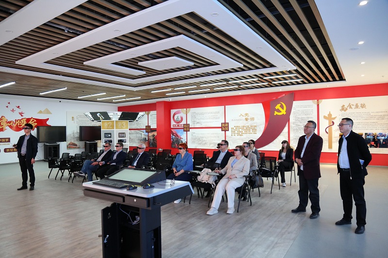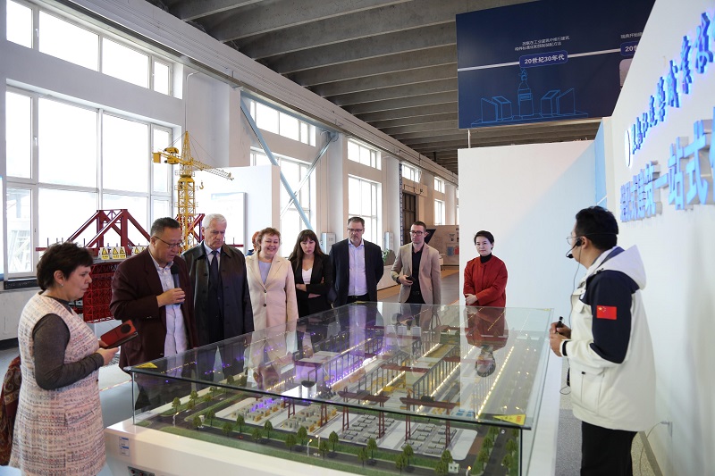 俄罗斯代表团受到了黑龙江建筑职业技术学院的热情接待,参观了学院的多个特色教育教学场所,包括建筑实体教学工厂、装配式建筑教学工厂、技术先进的实训基地,以及展现学院历史和科技成就的校史馆、VR虚拟仿真思政教学平台等。